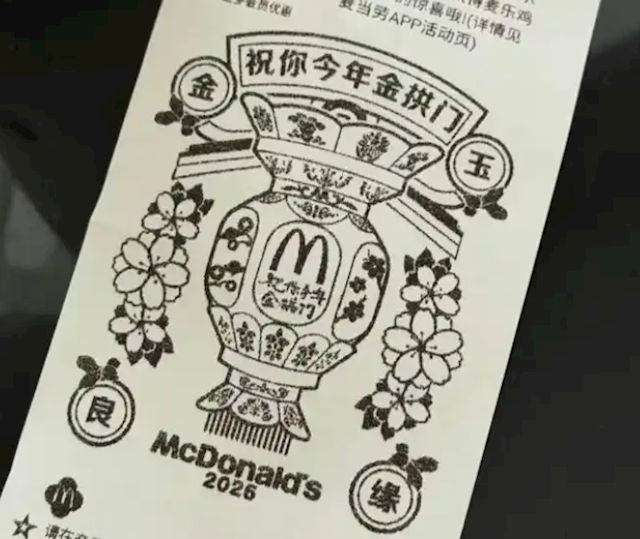据了解,麦当劳在1月28日官宣,今年新春特别邀请4位非遗灯彩传承人,联手打造北京宫灯、佛山彩灯、秦淮荷花灯、安徽鱼灯四款主题灯彩,同时将消费小票升级为 “一灯一愿” 特别限定版本。